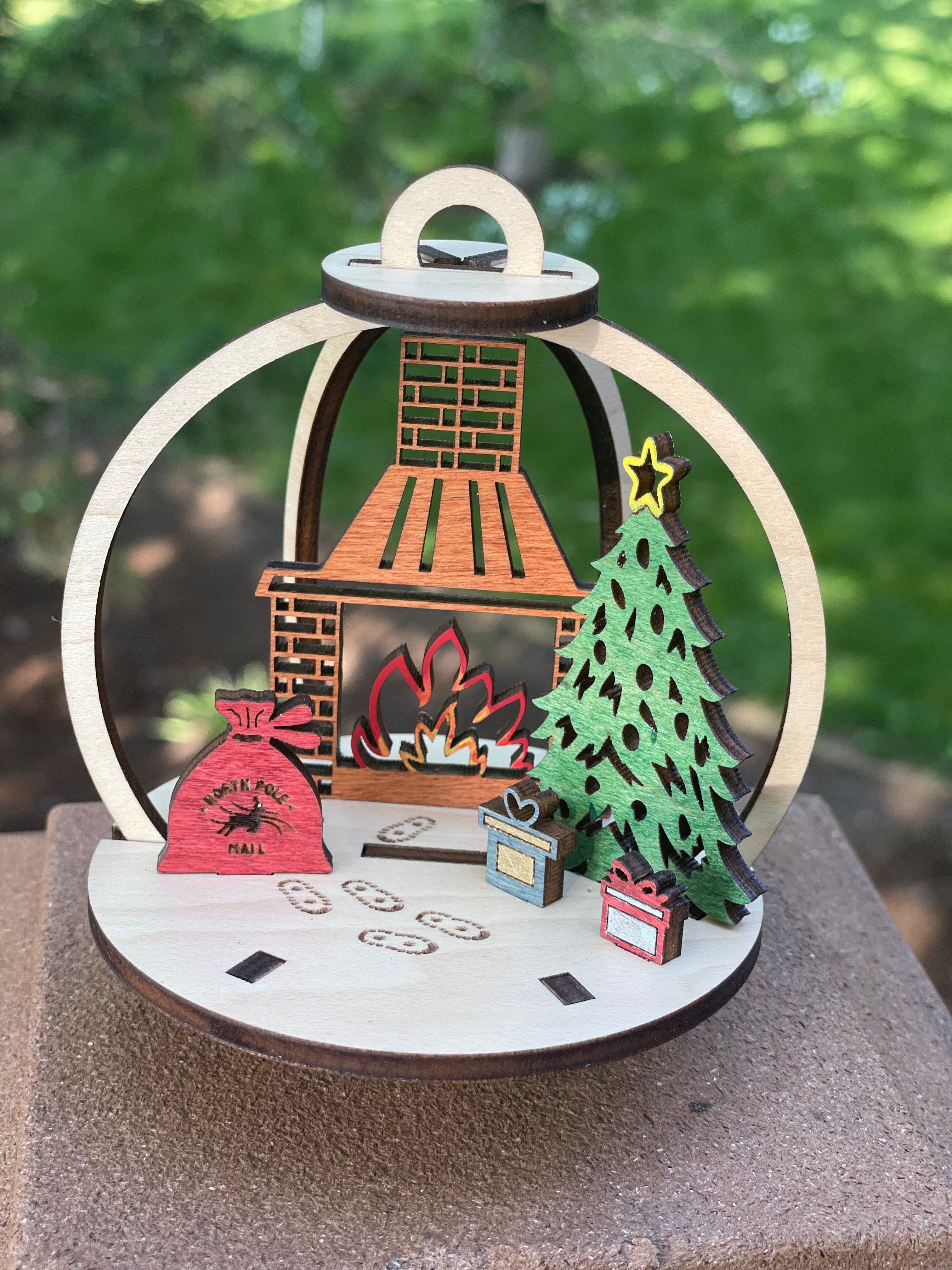 He was here! Santa came! Santa left a bag of goodies - along with his footprints! This globe is made from stained maple wood with hand-painted accents. It measures 3 1/2 inches in diameter. The globe comes with a wooden base for tabletop display and a wooden hook for hanging, all in a gift-worthy box.