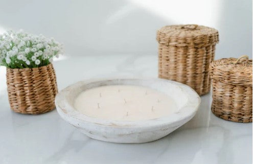 Experience the handcrafted luxury of our Round Dough Bowl. Each 22 oz soy candle is hand poured into a rustic white bowl, creating a unique and elegant centerpiece for any room. Savor the calming ambience and warm light of our all-natural soy wax.