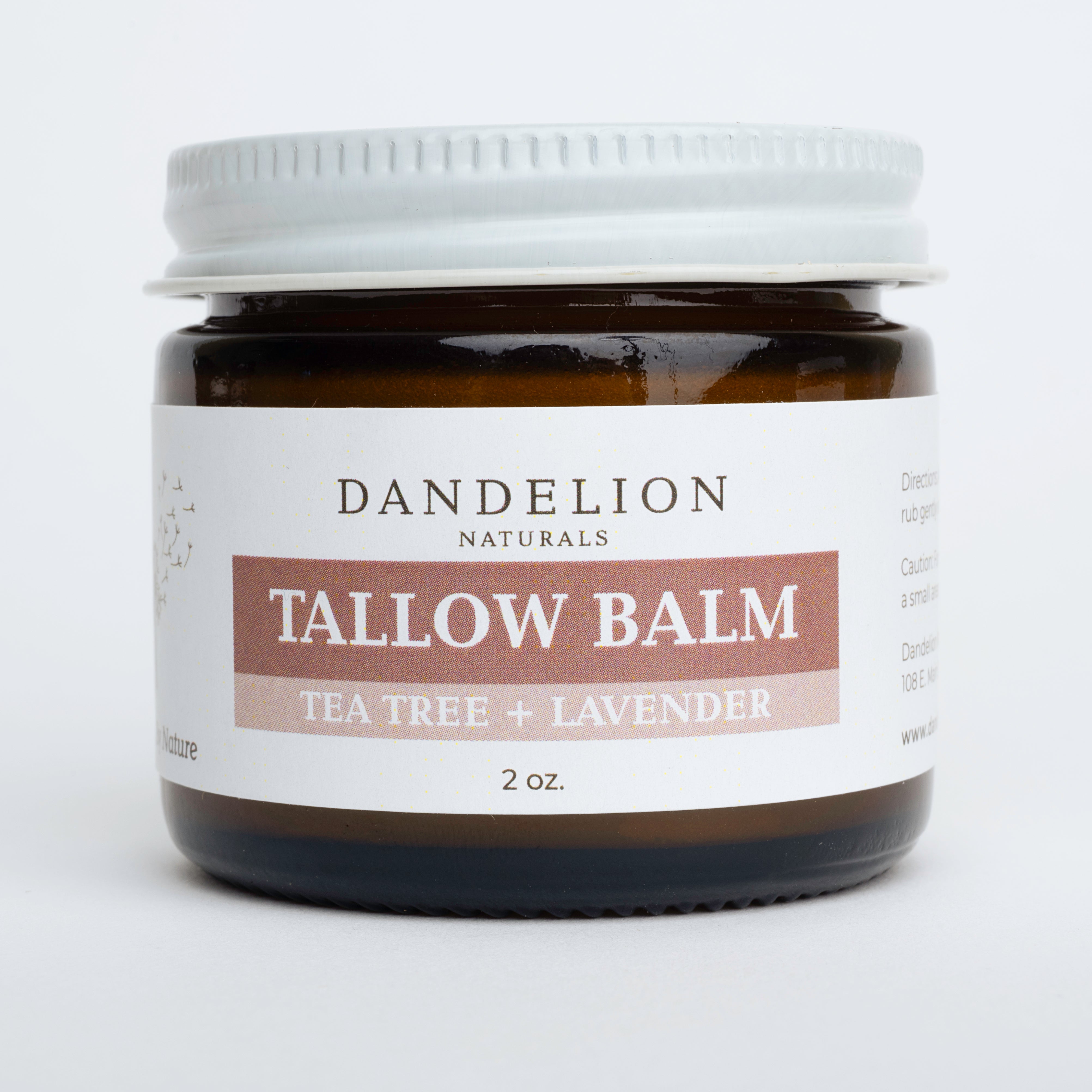 Nourish, hydrate, & rejuvenate your skin with our luxurious Tallow Balm, enriched with the healing powers of Jojoba Oil, Tea Tree and Lavender Oils. This rich, all-natural balm is formulated to deeply moisturize, repair, & protect your skin, leaving it soft, smooth, & glowing. • Grass-Fed & Finished Beef Tallow: Packed with vitamins A, D, & K2, tallow closely resembles the oils naturally found in your skin, making it highly effective in locking in moisture, soothing dry patches,& promoting skin regeneration. • Organic Jojoba Oil: Closely mimics the skin's natural oils, making it a perfect, non-greasy moisturizer suitable for all skin types. Jojoba oil helps to nourish, hydrate, and rejuvenate your skin. • Tea tree oil is known for its powerful antibacterial and antifungal properties, making it effective in treating acne and preventing breakouts. Lavender oil helps to soothe and calm the skin, reducing redness and irritation while promoting a balanced, healthy complexion. Ingredients: Grass Fed & Finished Adeps Bovis (Beef Tallow), Simmondsia Chinensis (Jojoba) Seed Oil*, Raw Cera Alba (Beeswax), Lavandula Angustifolia (Lavender) Oil*, Melaleuca Alternifolia (Tea Tree) Leaf Oil* *Certified Organic Ingredients