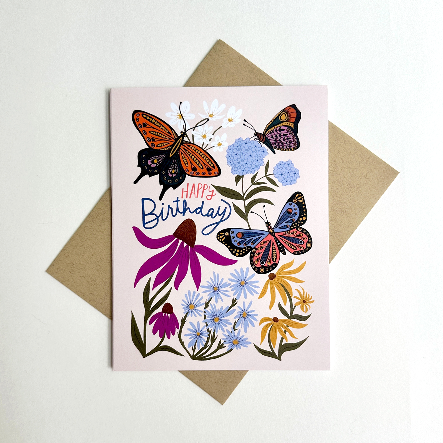 This card is created from an original drawing or painting. Size A2 ( 5.5 x 4.25 inches ) Printed on uncoated smooth 100lb paper. Includes brown kraft envelope. Blank inside, Emily Walker Art + Design logo on back of card.