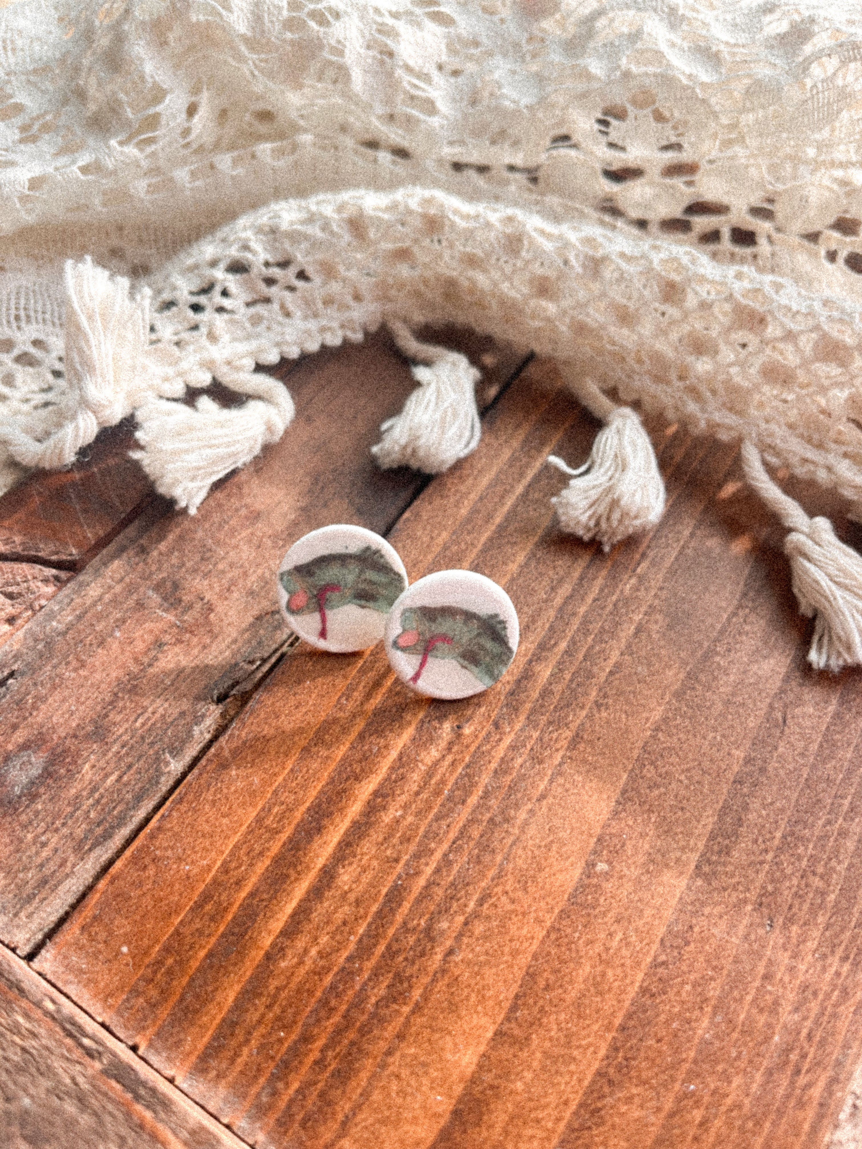 Artwork hand drawn by Rory. Image was printed on water-soluable transfer paper made into a print for Rory's clay earrings.
