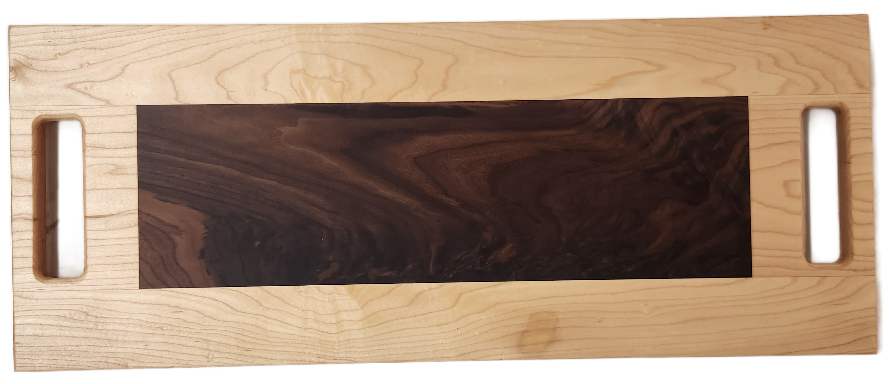Maple Frame, Walnut burl center 11" x 28" x .75". Square handles