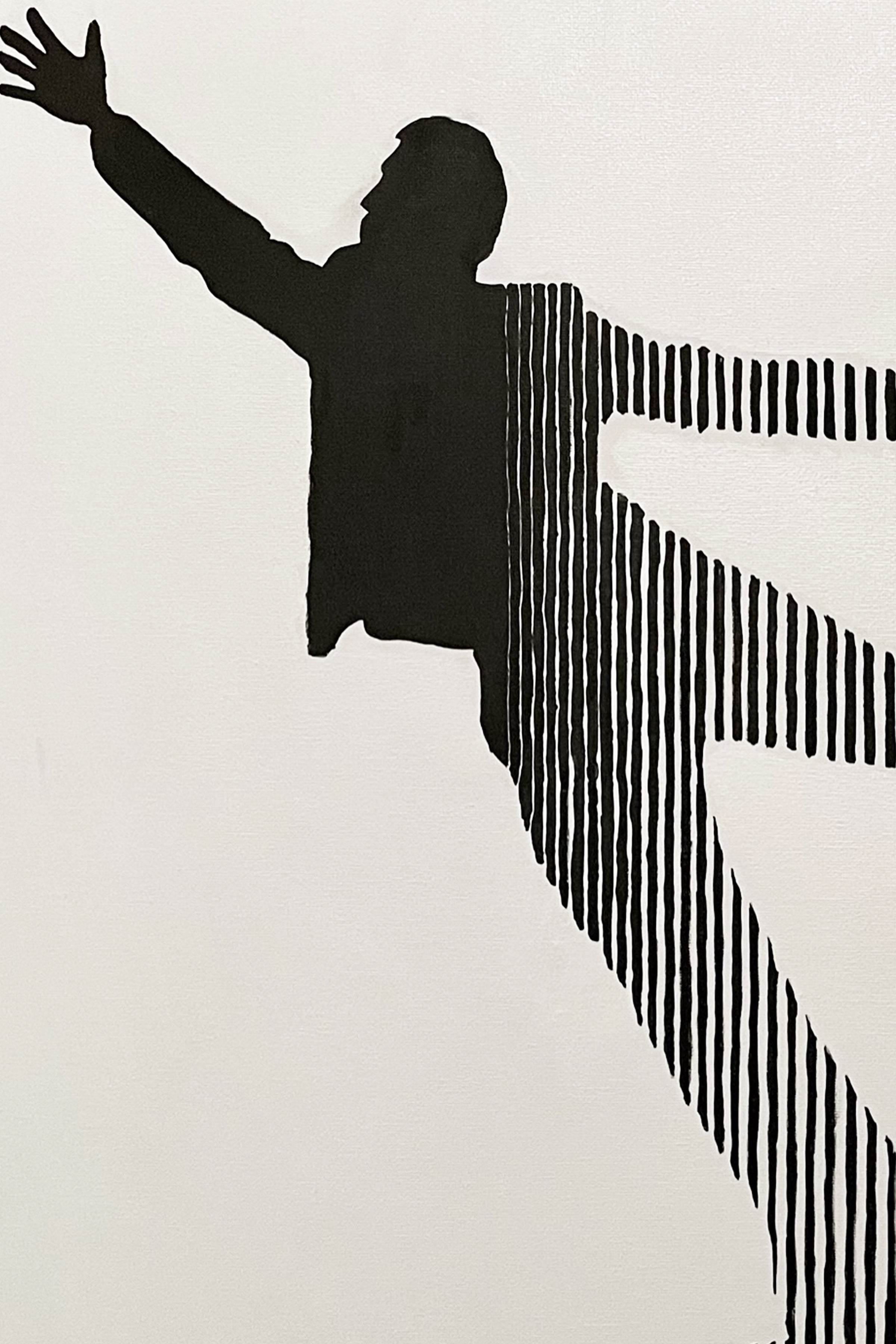 18" x 24" original acrylic on canvas painting. Black floating frame.