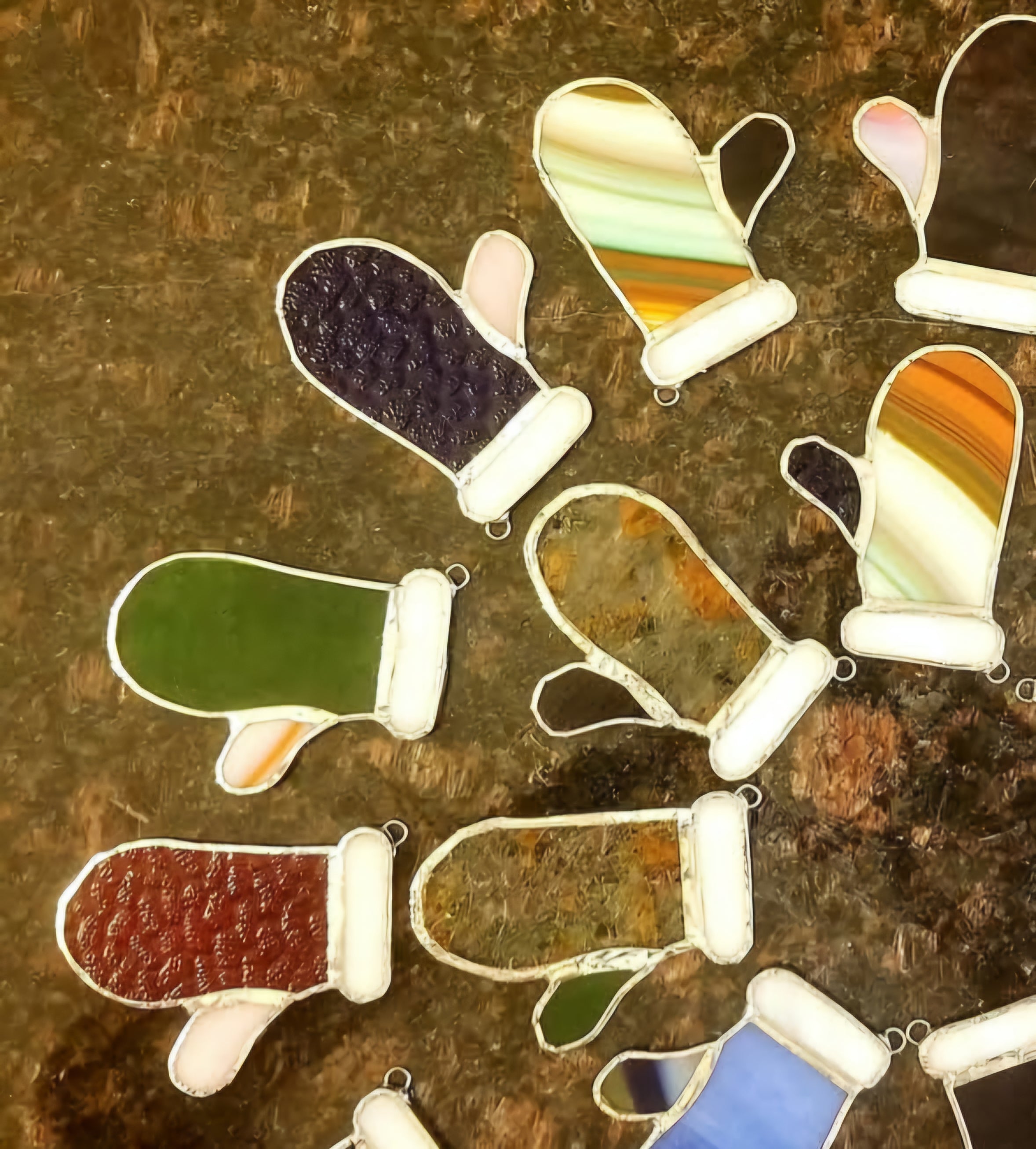 Stained glass mitten ornament 2.5 x 3.5