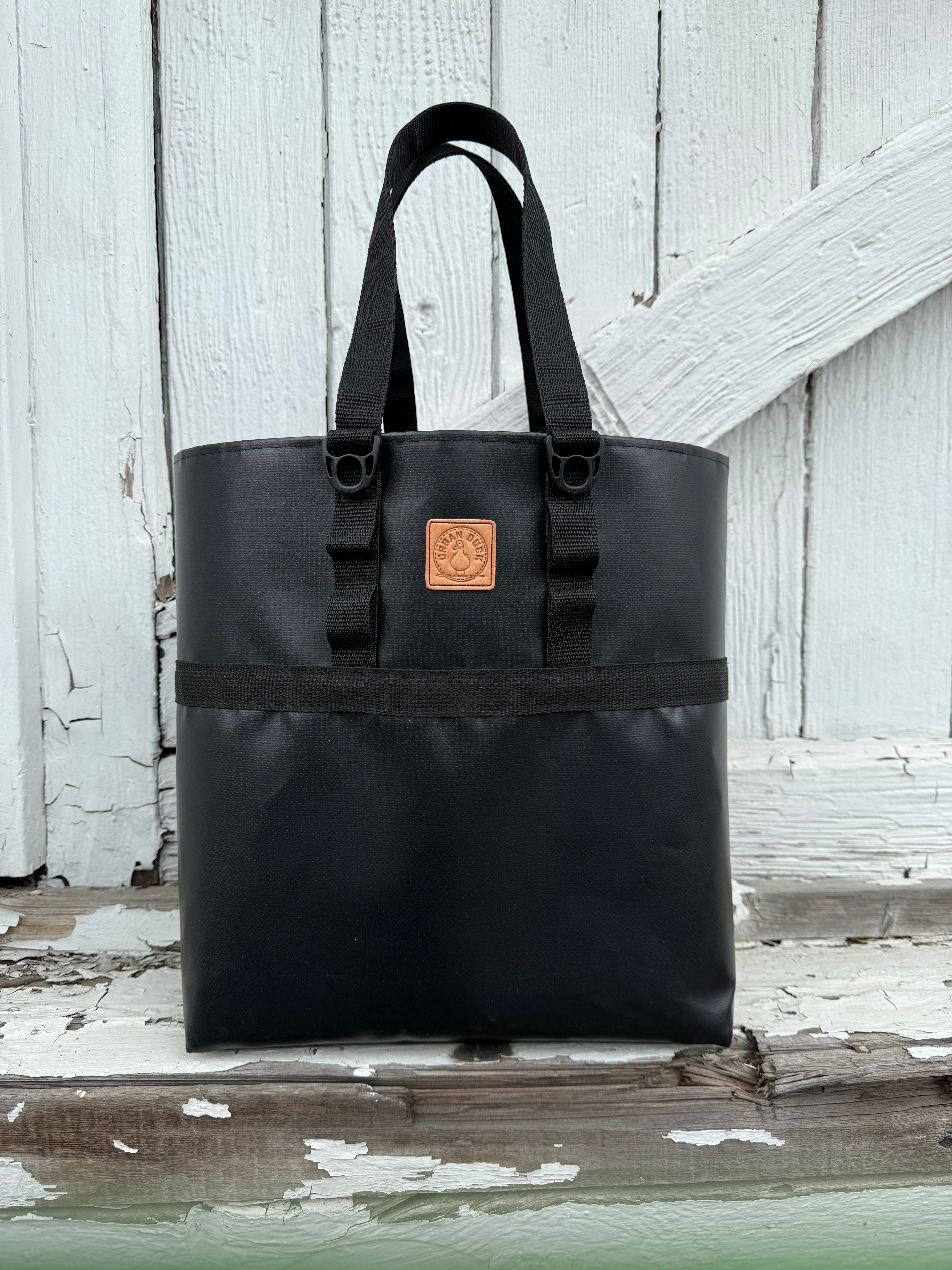 Experience versatility with The Urban Duck "Trip Tote" Handcrafted in Stillwater, MN, this water-resistant PVC tote is built for the demands of urban life. Perfect as a commute bag for work, the gym, or school, meeting the high standards of our wilderness-born craftsmanship. Whether you’re a university student, knitter, or need a reliable day bag, the Trip Tote blends durability with style to keep you prepared for the city’s dynamic needs. Available in bold solid colors, this tote combines practicality with a sleek design. With ample room for a large purse, books, or knitting supplies, it’s the ideal companion for your daily adventures. Invest in a handcrafted, USA-made bag that delivers both function and flair. DIMENSIONS: - 5-gallon volume / 19 liters - 12.25” L x 6” W x 15” H COLORS: - Custom colors available upon request (please message us for details) FEATURES: - Heavy-Duty PVC Material: Water-resistant, tear-resistant, and built to withstand tough conditions. Cold crack at -30°F, UV & mildew resistant. - Spacious Interior: 5-gallon capacity with ample room for a large purse, books, knitting supplies, or gym gear. - Compact Design: Slimmer profile (6” W) for easy carrying while still offering generous storage. - Reinforced Handles: Comfortable and strong for daily use. - Easy to Clean: Wipe down with a damp cloth for quick maintenance. - Handmade Quality: Crafted in small batches in Stillwater, MN, using 18oz PVC vinyl for exceptional durability. CARE INSTRUCTIONS: - Cleaning: Wipe with a damp cloth and mild soap to remove dirt or stains. Avoid harsh chemicals to preserve the material’s integrity. - Storage: Store in a cool, dry place away from direct sunlight to prevent discoloration. - Avoid Overloading: While sturdy, avoid exceeding the bag’s weight capacity to maintain its shape and longevity. - Material Note: Made in the USA with 18oz PVC vinyl fabric, UV & mildew resistant. ABOUT ME: Hi, I’m the maker behind Urban Duck! My journey began in the rugged world of sled dog racing, where I spent over 20 years testing gear in the harshest conditions. Frustrated by products that couldn’t keep up, I started crafting my own—beginning with a pair of mittens for my niece that became the Explorer Duck Mitts. Today, I channel that passion for durability and function into every handmade piece, like the Trip Adventure Tote. Each item is crafted with care in Stillwater, MN, inspired by my roots and built to last, whether you’re exploring the wild or navigating the city. Follow my story on Instagram (@urbanduckmn) for a peek behind the scenes!