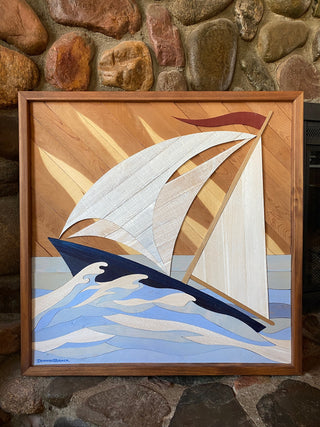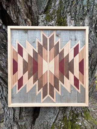 I’ve been an artist, maker, and DIYer all my life. After a long career in manufacturing, I began spending more time in my art studio/wood shop, and almost by accident, a second career was born! My salvaged wood mosaics are original designs, made one at a time, one piece at a time. I enjoy the challenge and process of blending art with woodworking, as well as painting, and pen and ink drawing. A native Minnesotan now living in Wisconsin, and an avid camper, hiker, and fisherman, my work is deeply inspired by love and respect for the great outdoors.
