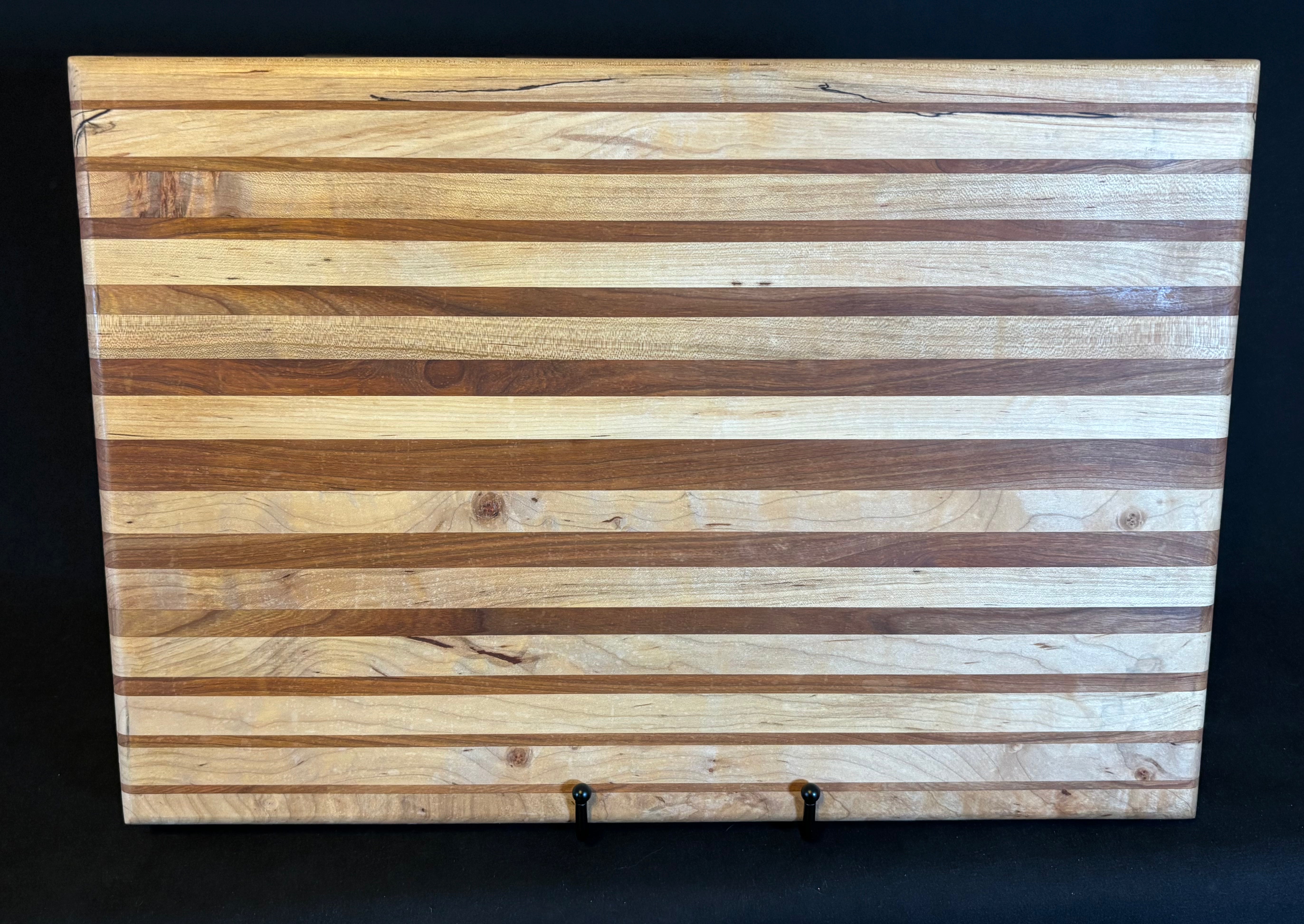 Edge Grain Cutting Board made with Cherry and Maple woods with beveled edge. 18" long x 12.5" wide x 1.5" deep.