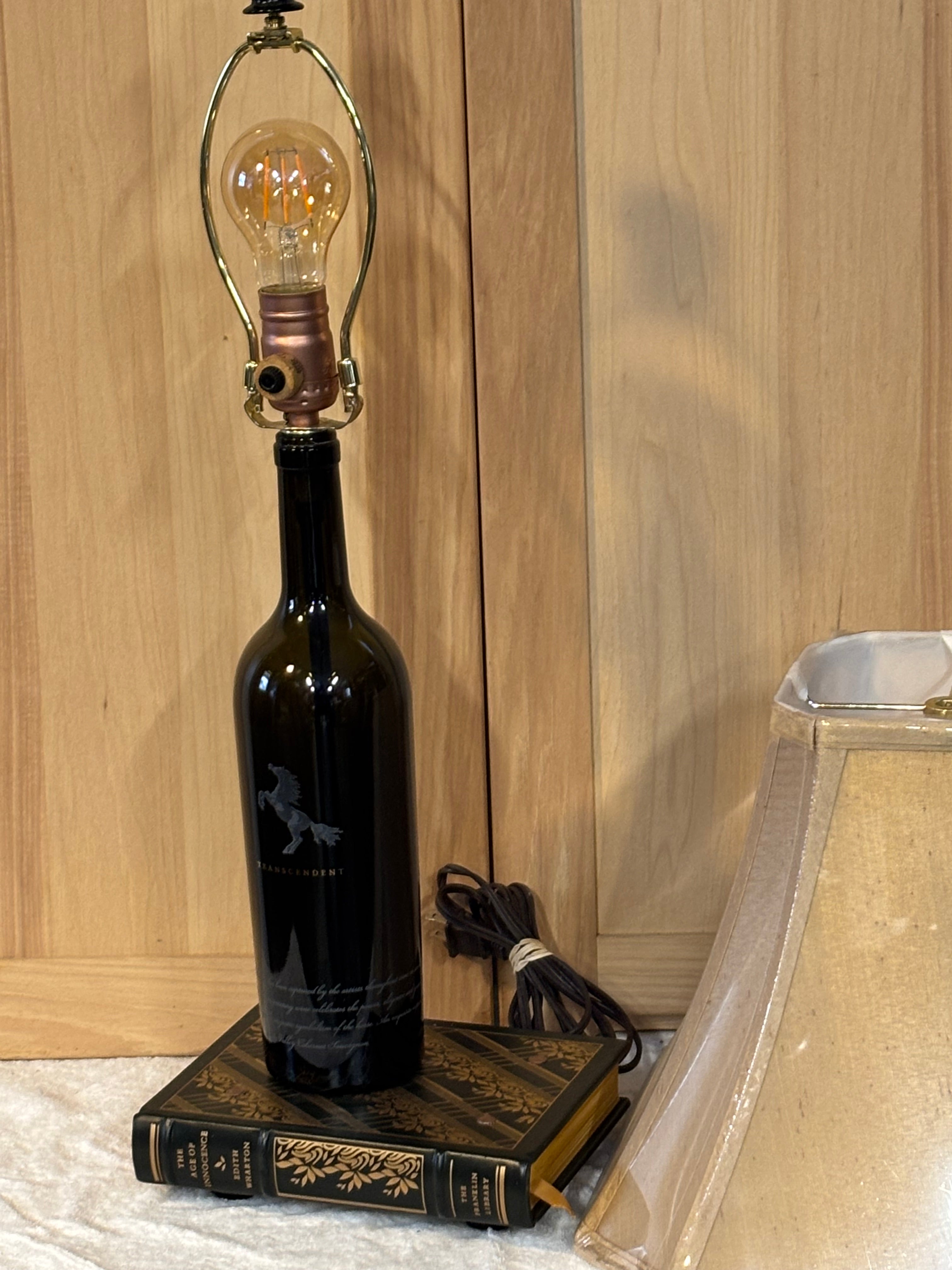 Experience a delightful combination of literature and relaxation with this unique lamp. The base is crafted from a repurposed Dark Horse Cabernet Sauvignon wine bottle, beautifully paired with a book that serves as a stylish backdrop. The soft glow emitted by the lamp creates a cozy atmosphere, perfect for unwinding with a good book and a glass of your favorite wine.