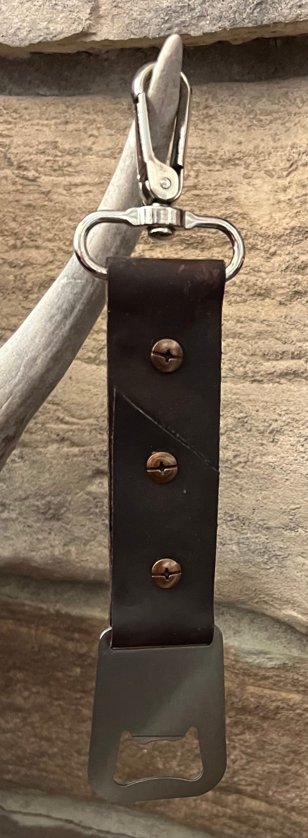 Rustic bottle opener with space to hold your golf tees. The swivel clip bottle opener keychain is the perfect gift for any man in your life. The large swivel clip hooks onto a belt loop, backpack or keychain. Never be found without a bottle opener for your beers again.
