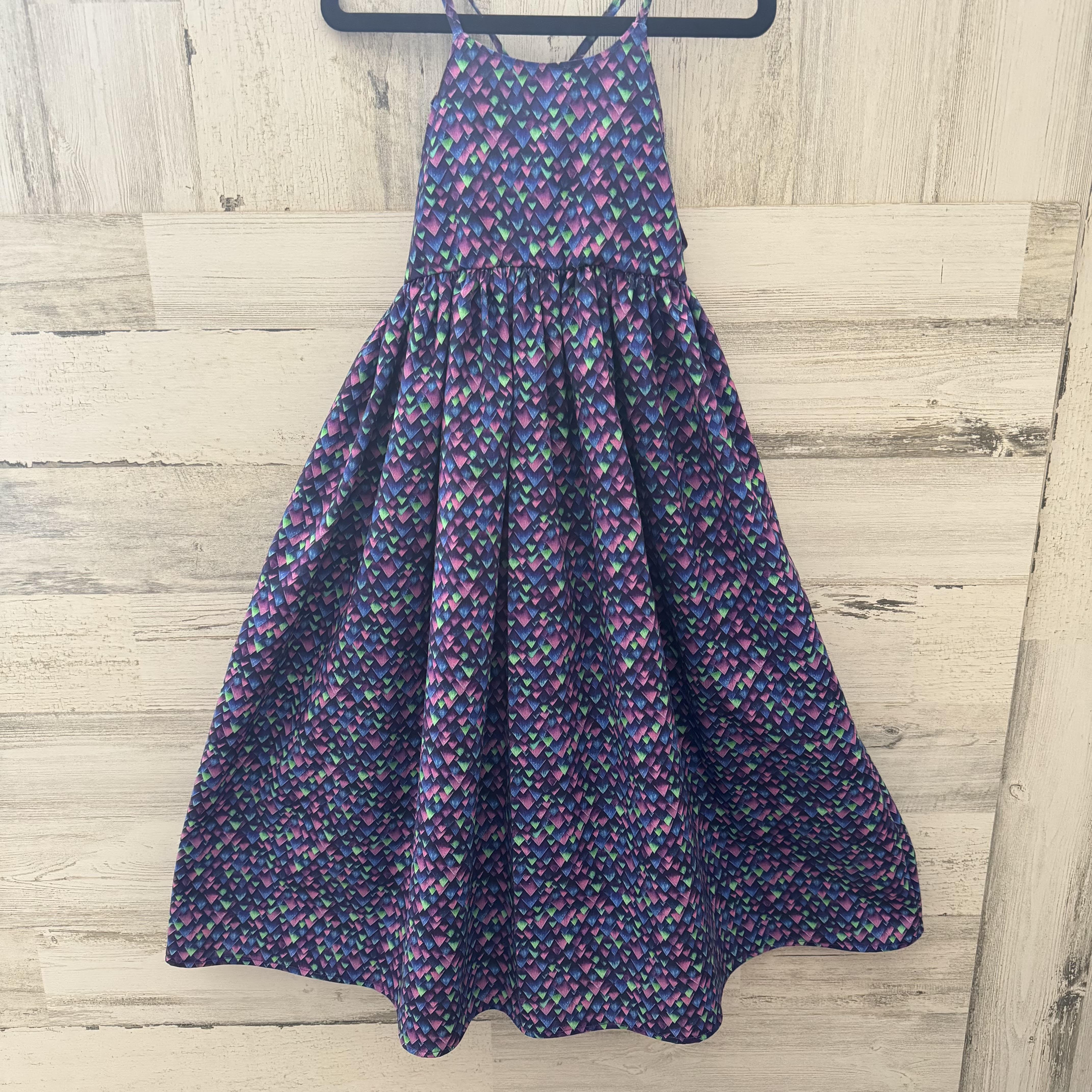 100% cotton maxi length dress with an empire gathered waist and beautiful back tie detail.
