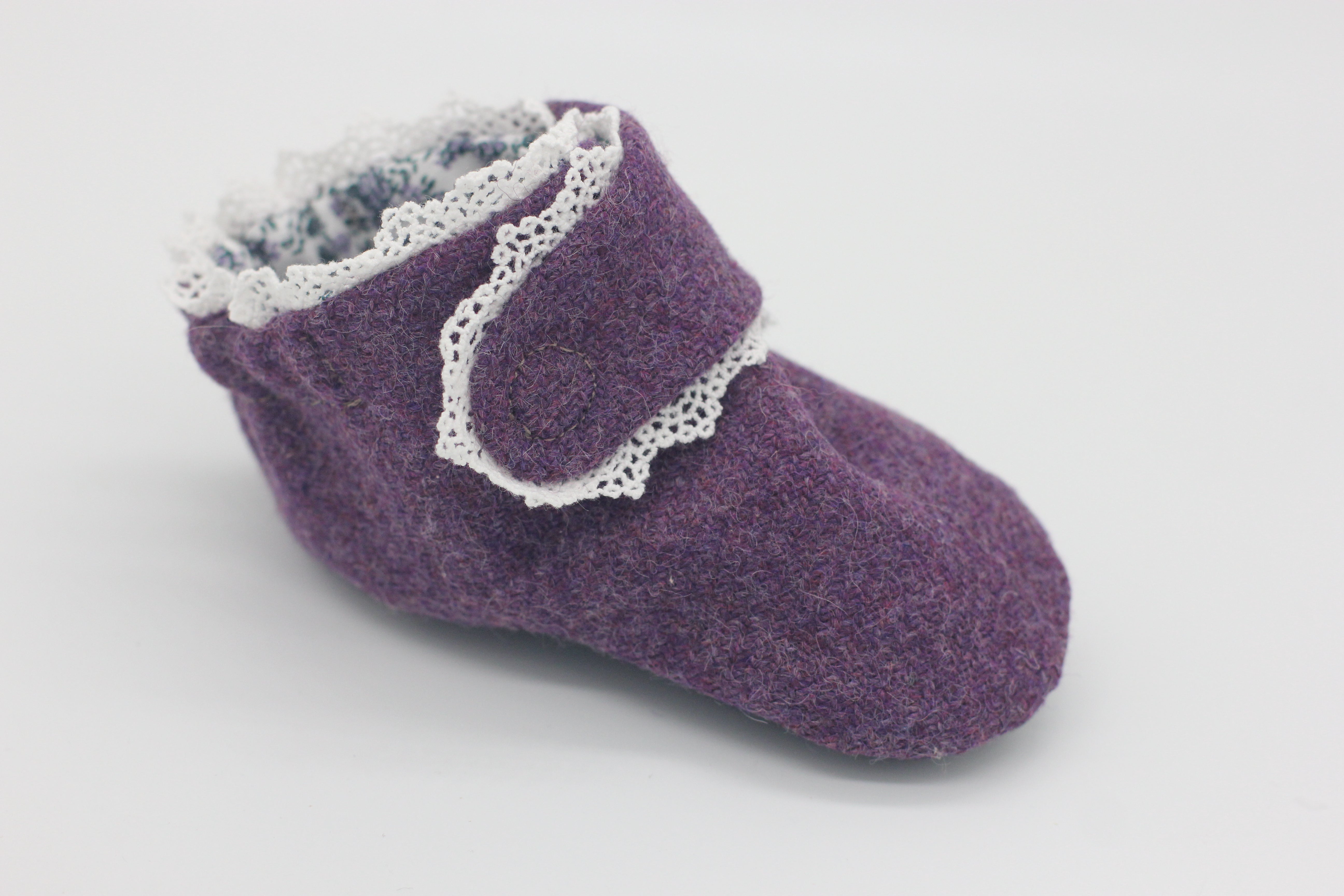 Baby Shoes – Handmade from upcycled materials, magnetic clasp, leather soles