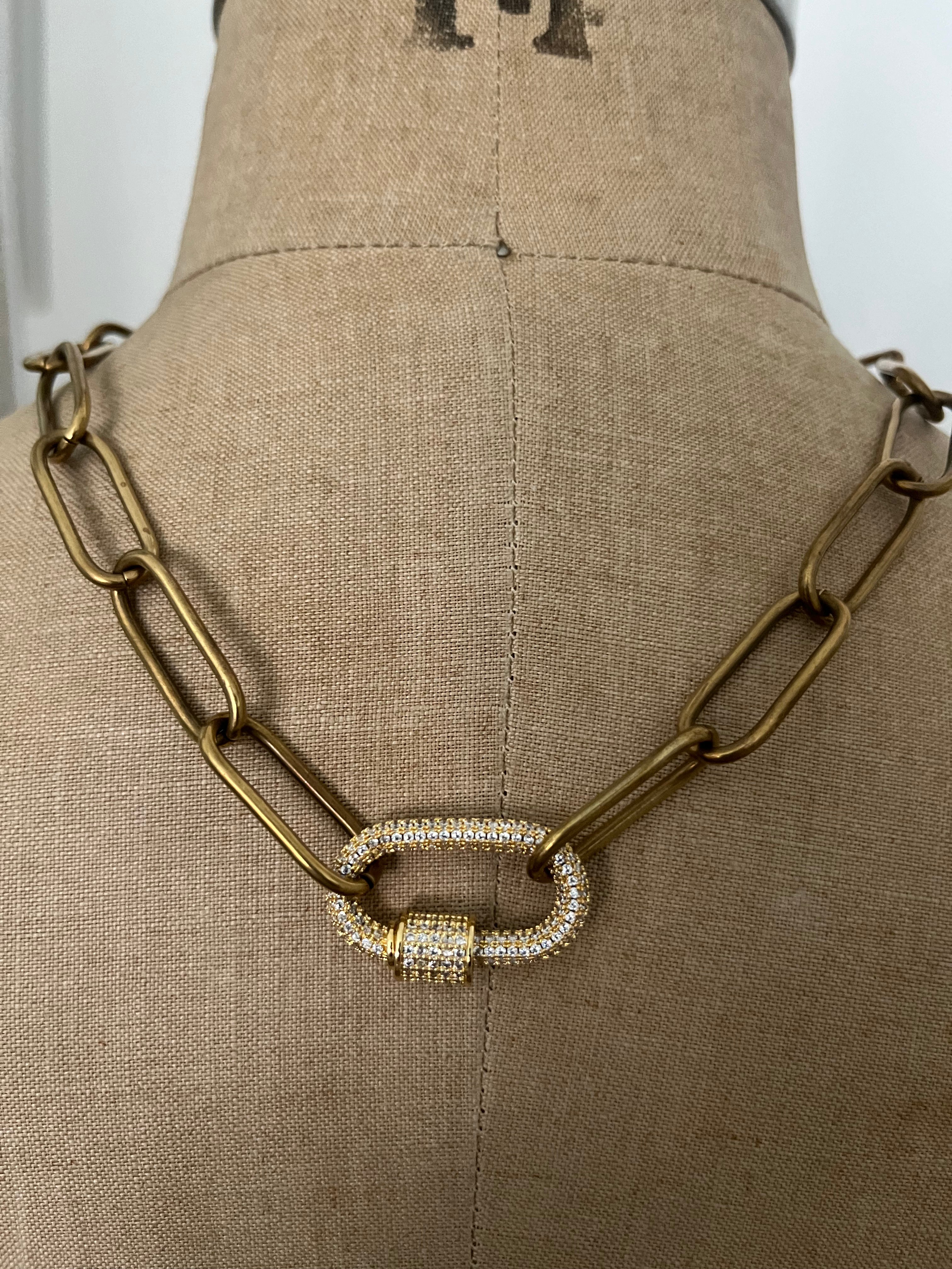 brass oval link w/lg rhinestone carabiner
