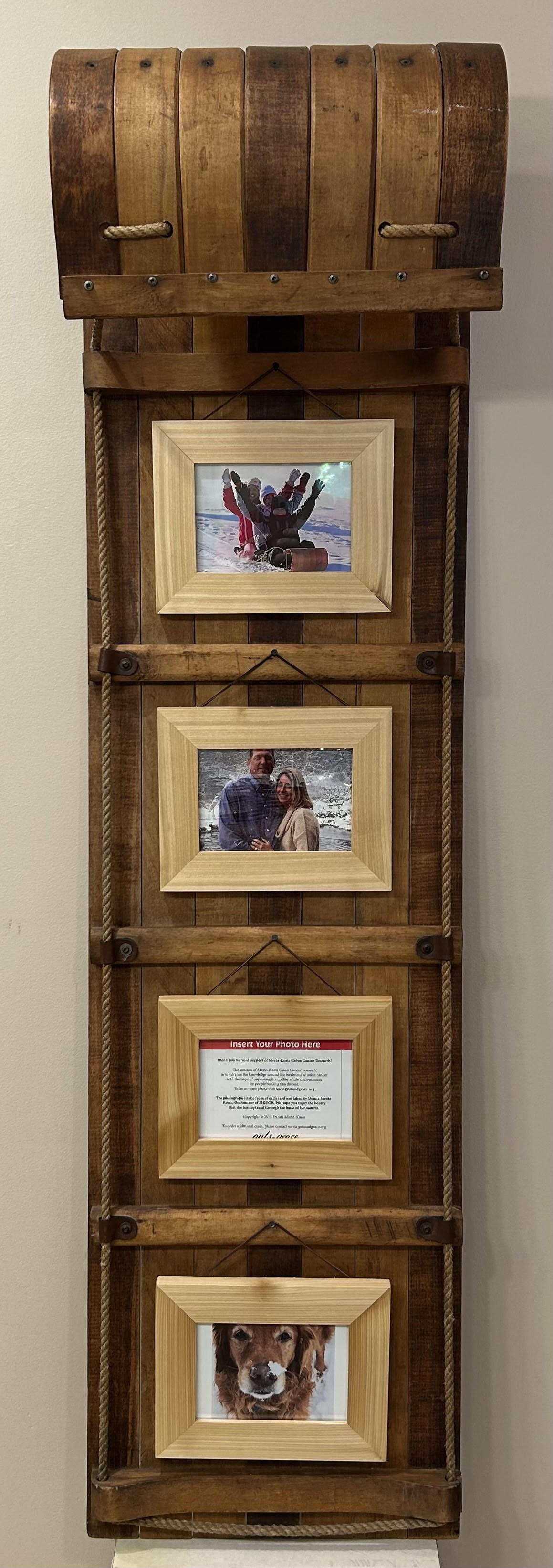 Upcycled Vintage Toboggan with 4 photo frames, 5ft tall, 16" wide